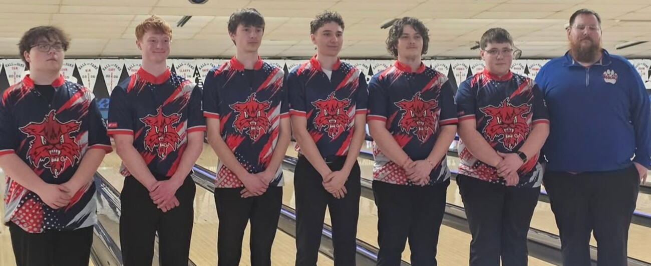 Jayden Beichley and Cayden Slifer both bowl for Marshalltown and were crowned conference champs this past weekend. Jayden also earned 2nd Team All-Conference, along with 1st Team All-District and 2nd Team All-State this past weekend. Wolverines/Bobcats: from left-Carter McCready, Coach Nate Clark, Aiden Cowan, Porter Niedermann, Gage Grieves, Jayden Beichley, Cayden Slifer.
