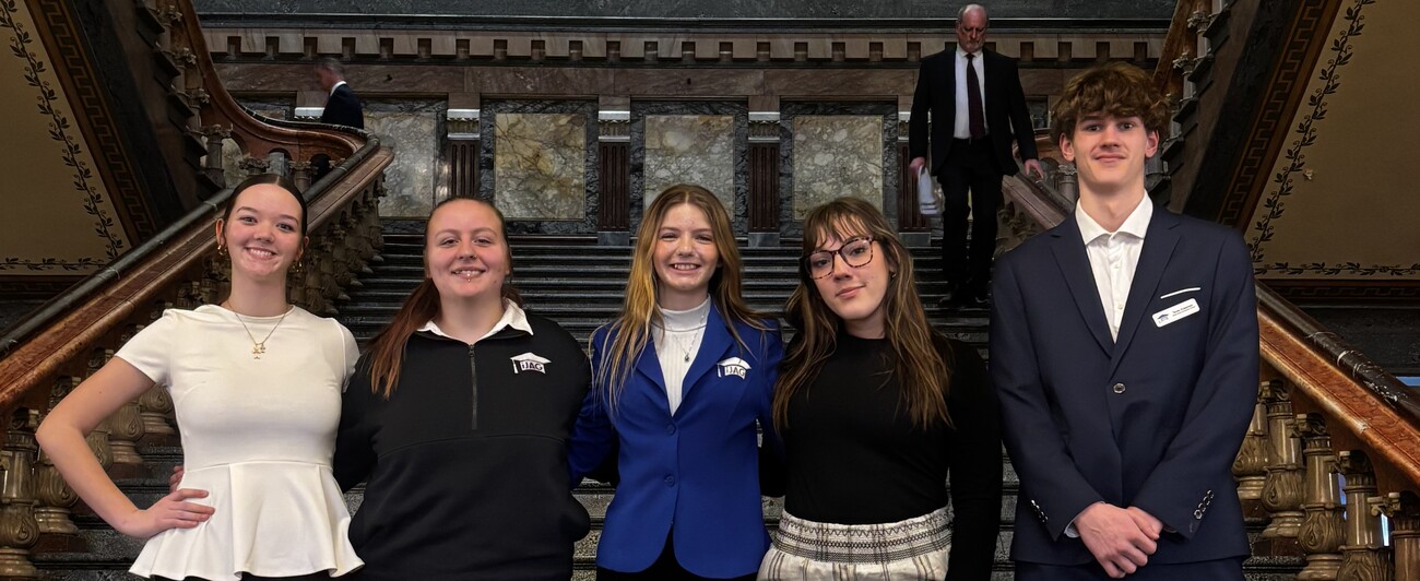 GMG iJag students participated in the Iowa Legislative Days on Feb. 18th in Des Moines. From left-Gracie Deal, Kami McWilliams, Gracelyn Peak, Summer Witte, Tavin Coleman.