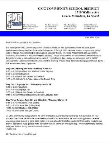 Information on the Iowa Statewide Assessment of Student Progress (ISASP): Wolverine Families please read: