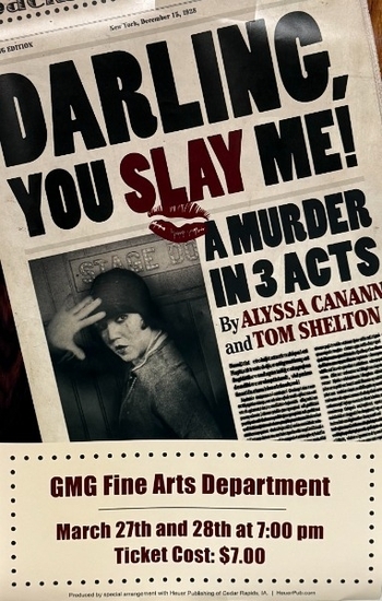 "Darling, You Slay Me!" A Murder in 3 Acts The GMG Fine Arts Department will perform the spring musical at 7:00 p.m. both Friday and Saturday nights (March 27-28) Tickets are $7