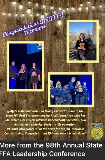 A record number of GMG iJAG students qualified for the State Career Development Conference this year. They all did an outstanding job and we are very proud! •Henry Dieleman - Employability Skills •Jordan Rhodes - Financial Literacy •Gracelyn Peak - Prepared Speaking •Brooke Thomas - Ambassador •Kami McMilliams, Scarlet Witte, KC Witte, Payton Laffoon - Love Project •Landon Balmer - . . .